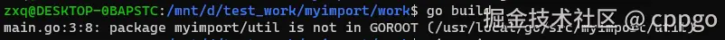 11 zxq@DESKTOP-0BAPSTC:/mnt/d/test_work/myimport/work$ go build