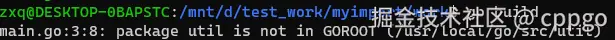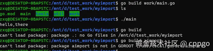 1 zxq@DESKTOP-0BAPSTC:/mnt/d/test_work/myimport$ go build work/main.go
