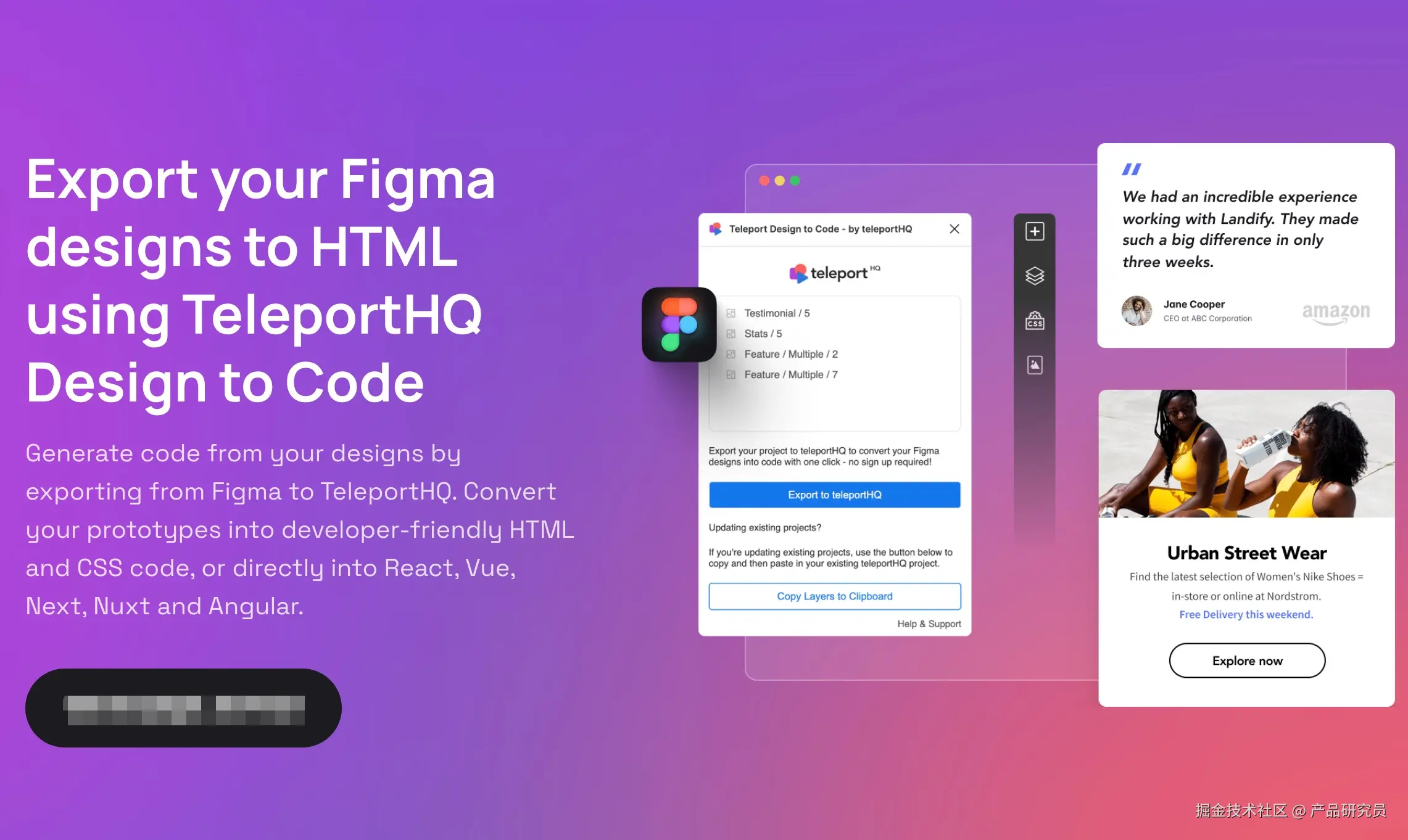 **实测感受:**用 Locofy 之前,你得有个心理准备——你需要教它。你得在插件里告诉它“这是个 Button”、“这是个 Input”。一旦你标记好了,它生成的 React/Next.js 代码质量非常高,甚至能直接生成响应式媒体查询。