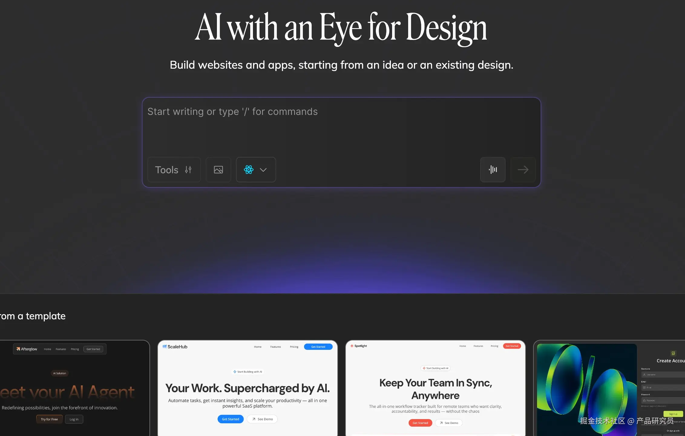 **实测体验:**这个工具的逻辑是——把代码组件注册进去,让运营/设计师拖拽。它最强大的地方在于“Visual to Code”的反向逻辑。你可以把现有的 React 组件喂给它,然后通过 AI 把 Figma 设计稿转换成使用这些组件的页面。它的 AI 能够把图片直接转成代码(Image to Code),虽然准确率也就 80% 吧,但用来做活动页、推广页,效率快得飞起。