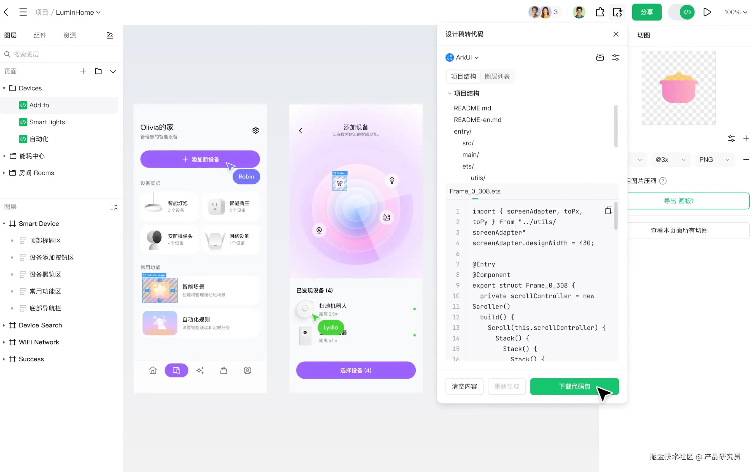 Pixso 这两年也明显在往产研一体方向走,D2C 也算是它的重要一环。它和墨刀一样,也能生成鸿蒙ArkUI代码。