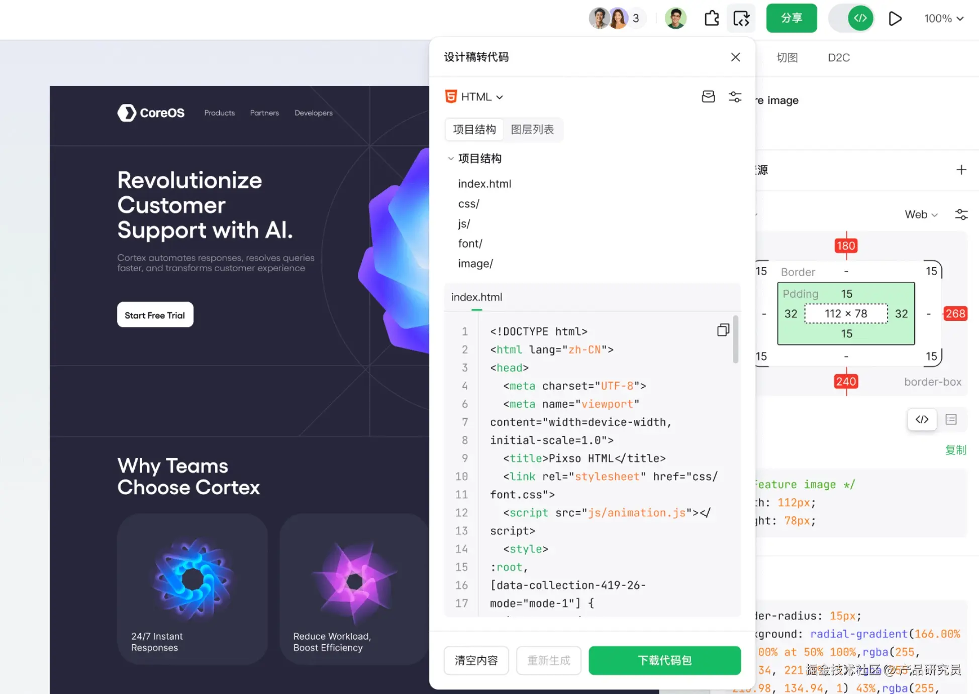 我一开始也指望它能直接干完活,后来发现想多了。目前没有任何一款工具,可以把设计稿 100% 转成你项目里能完美合并的代码。真正好用的 D2C,大概能帮你省下这些体力活: