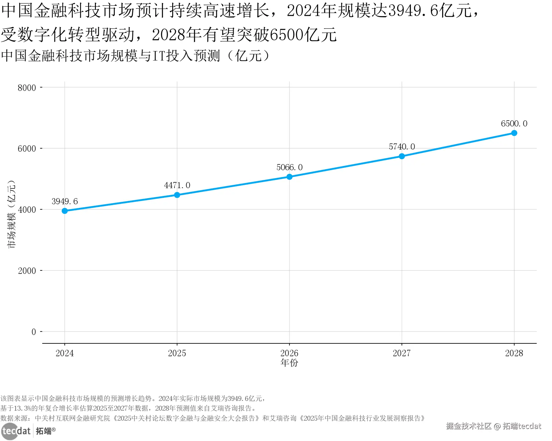 中国金融科技市场规模预测折线图表7数据及PDF模板已分享到会员群
