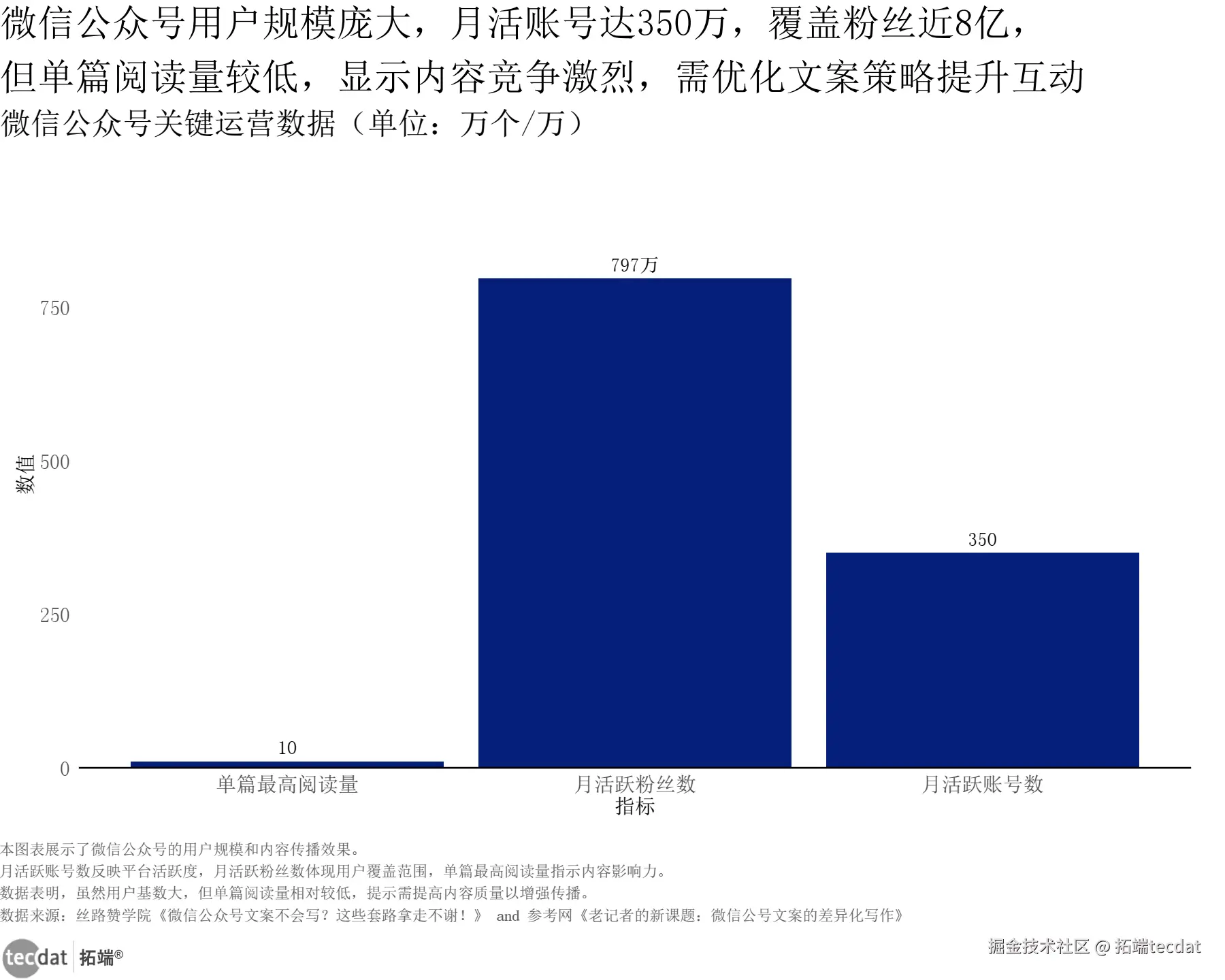 3秒解读:微信公众号月活跃账号达350万个,月活跃粉丝近8亿,但单篇最高阅读量仅10万,用户基数与内容传播效率存在明显落差。
