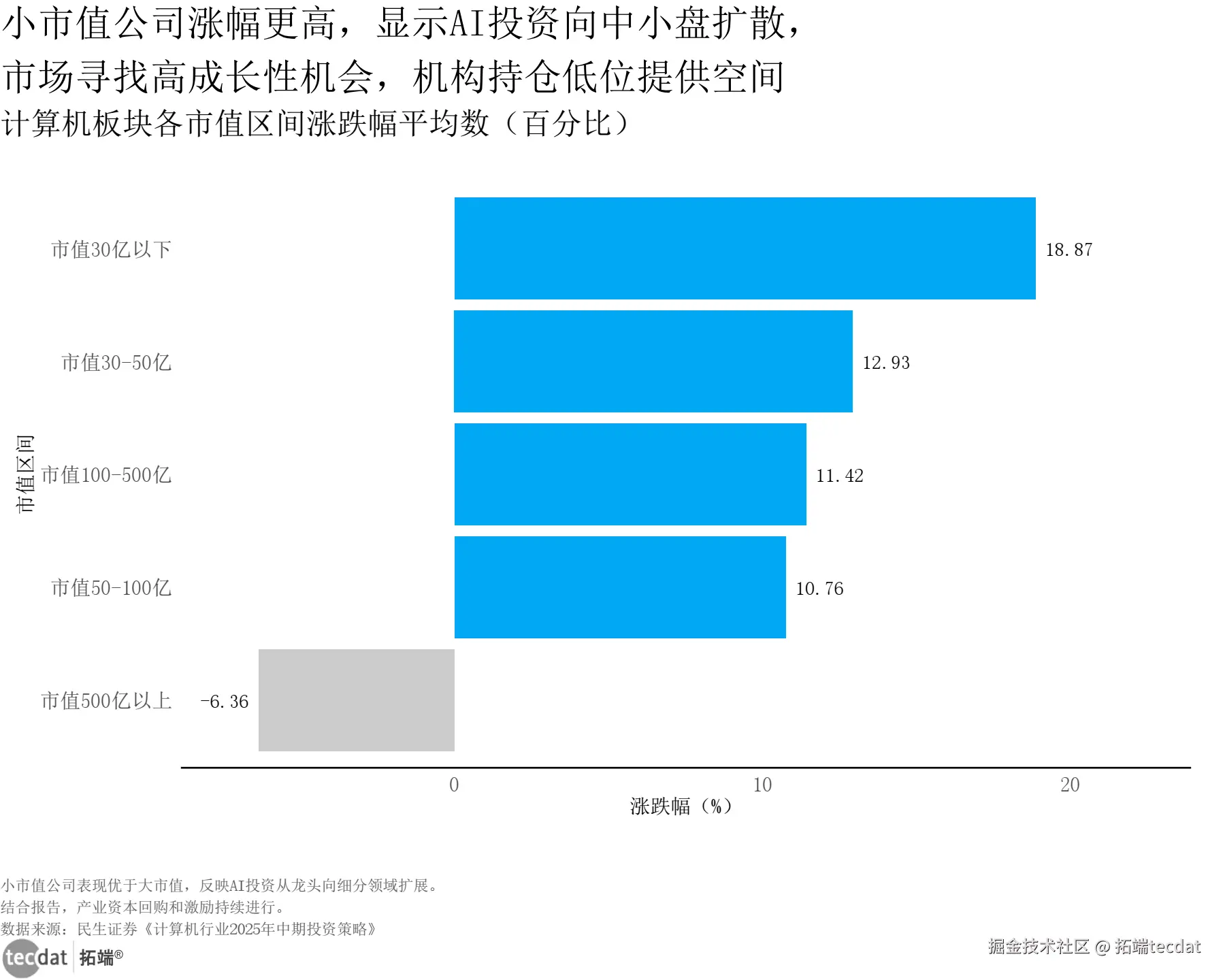 计算机板块各市值区间涨跌幅条形图表8数据及PDF模板已分享到会员群