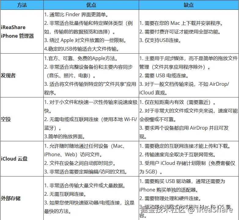 Finder 和 iReaShare iPhone Manager 是将大文件从 Mac 传输到 iPhone 以及从 iPhone 传输到 Mac 的最佳工具。它们允许您通过 USB 连接设备,并轻松导入/导出文件。如果您有 USB 闪存盘等外部存储设备,也可以使用它来传输大文件。