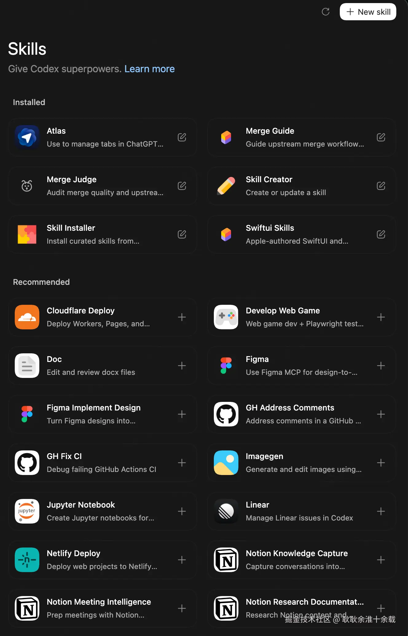 但 Codex 的 Skills 更像是: