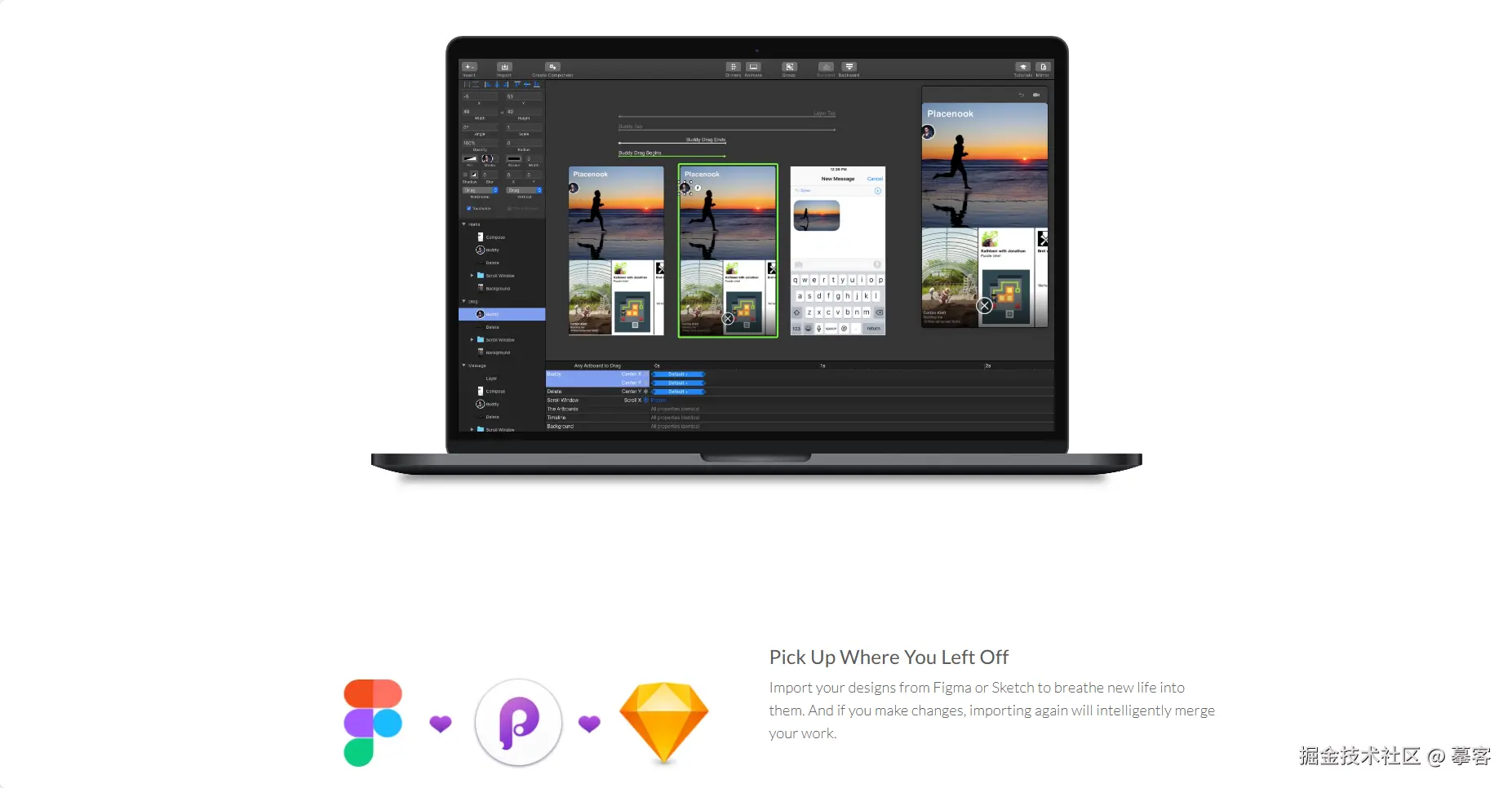设计师通过Principle可以快速地制作出具有丰富交互的产品界面设计,并且它能和Sketch进行无缝链接,可以快速导入你在Sketch里已经做好的图,