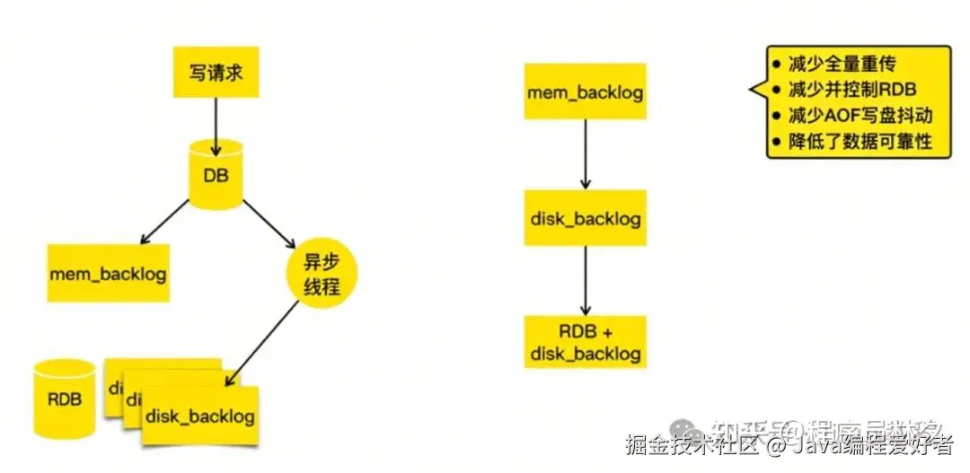 - 当硬盘 Backlog 积累过多时,会选择在业务低峰期触发一次 RDB 快照,并删除该 RDB 之前的所有硬盘 Backlog 数据,以节省存储空间。