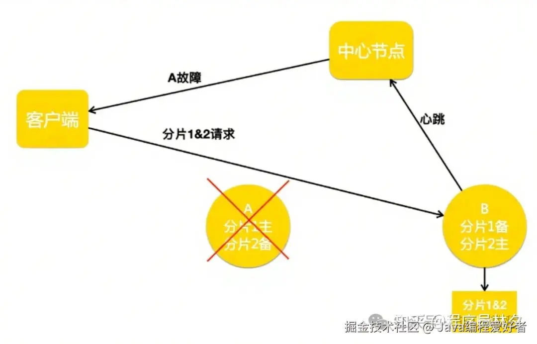 若 A 节点在数分钟内恢复(如因网络抖动导致短暂停机),中心节点会指示 B 节点将暂存的日志回传给 A。待 A 完成数据同步后,中心节点再通知客户端恢复正常的请求路径,将分片 1 的流量重新打回 A 节点。