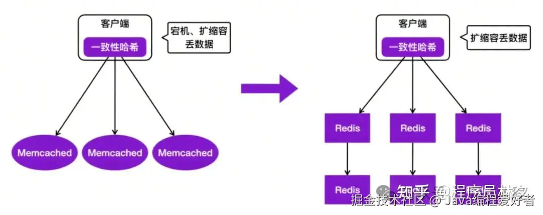 还记得那个年代吗?美团用的是 Memcached,客户端自己做一致性哈希,后端部署一堆 Memcached 实例。