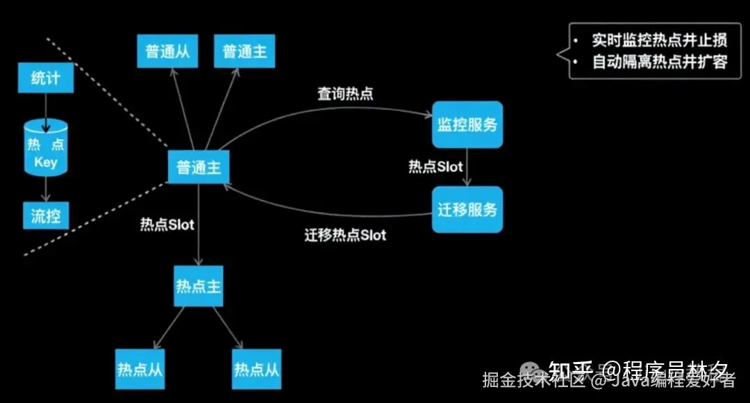- 将一组专门用于处理热点流量的“热点主从节点”加入当前集群;