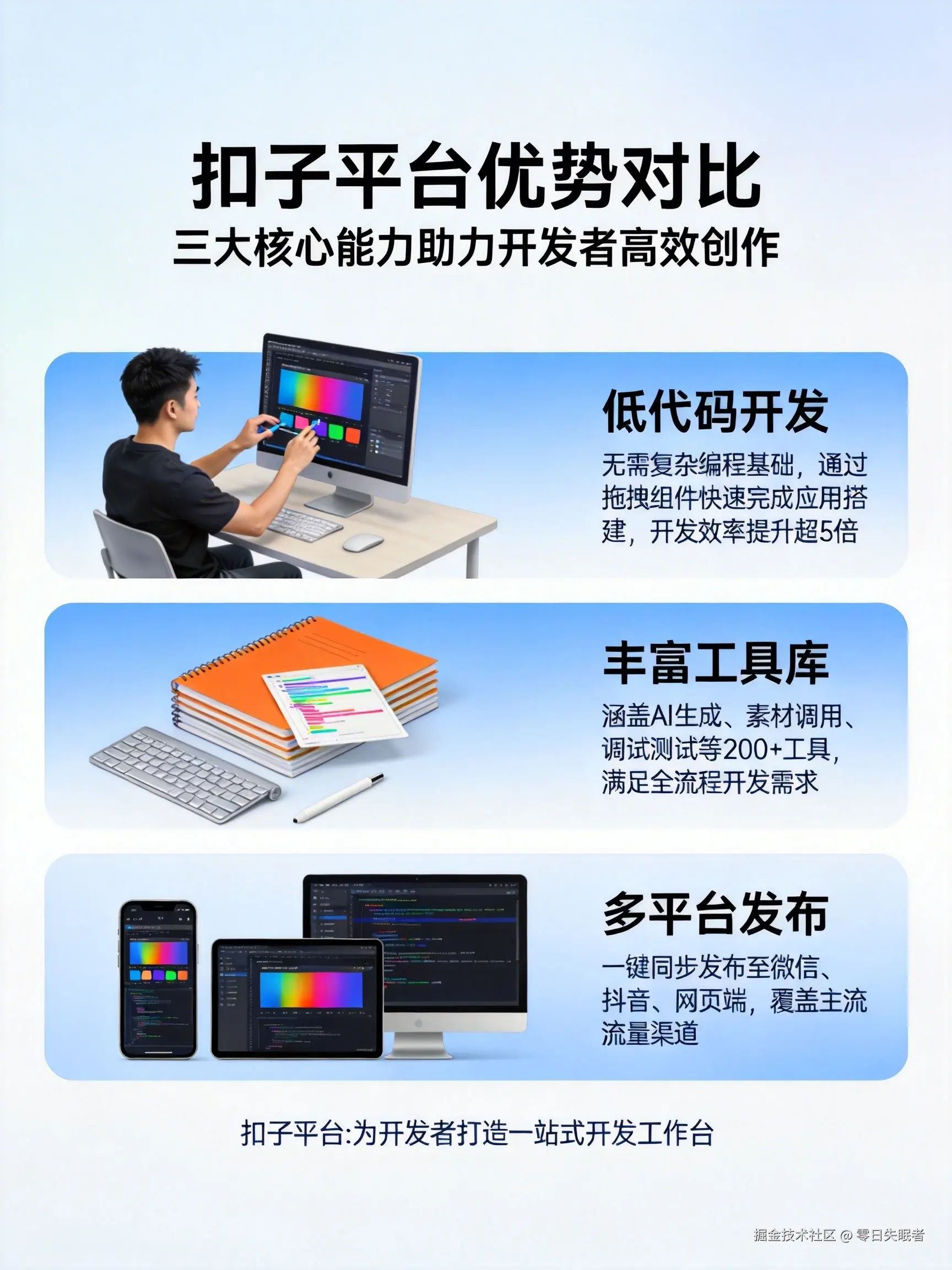 扣子平台提供了完整的智能体开发解决方案,主要优势包括: