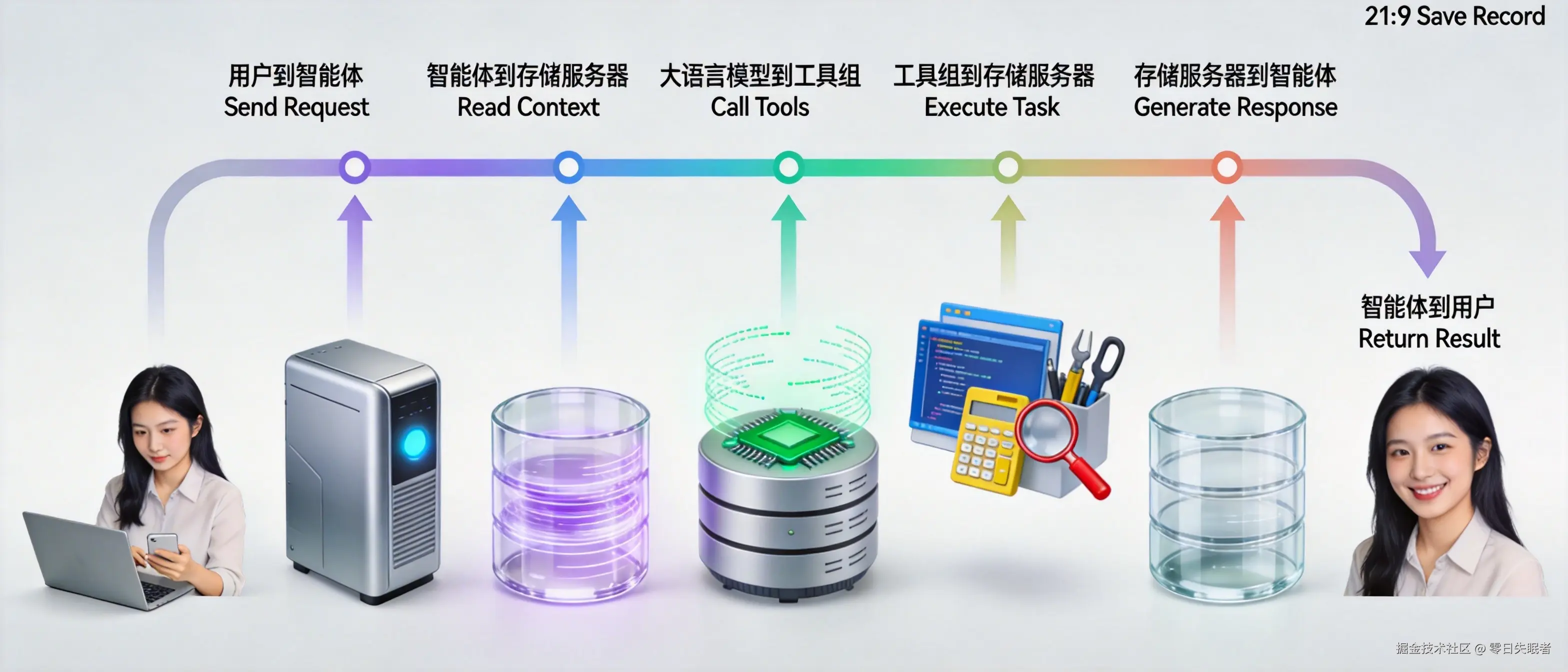 智能体是一个能够自主理解用户意图、调用工具执行任务并返回结果的 AI 应用。它结合了多种核心技术,形成了一个完整的智能服务系统。