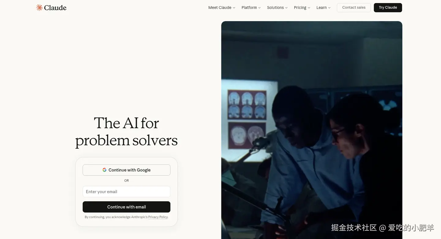准备好了工具,现在开始注册,打开claude.ai,填写自己的邮箱,填写好之后,它会给你发一封邮件。