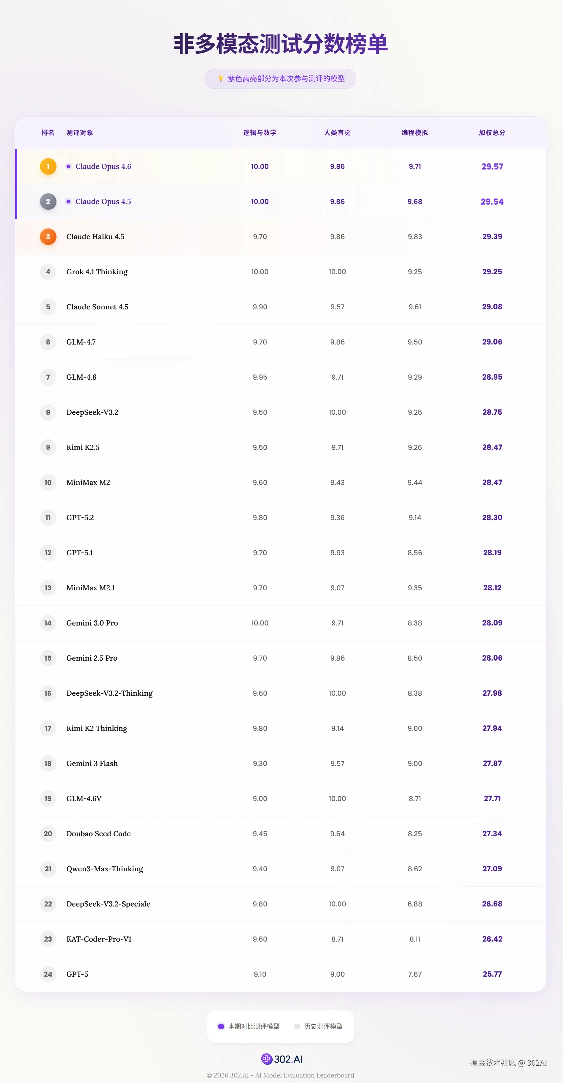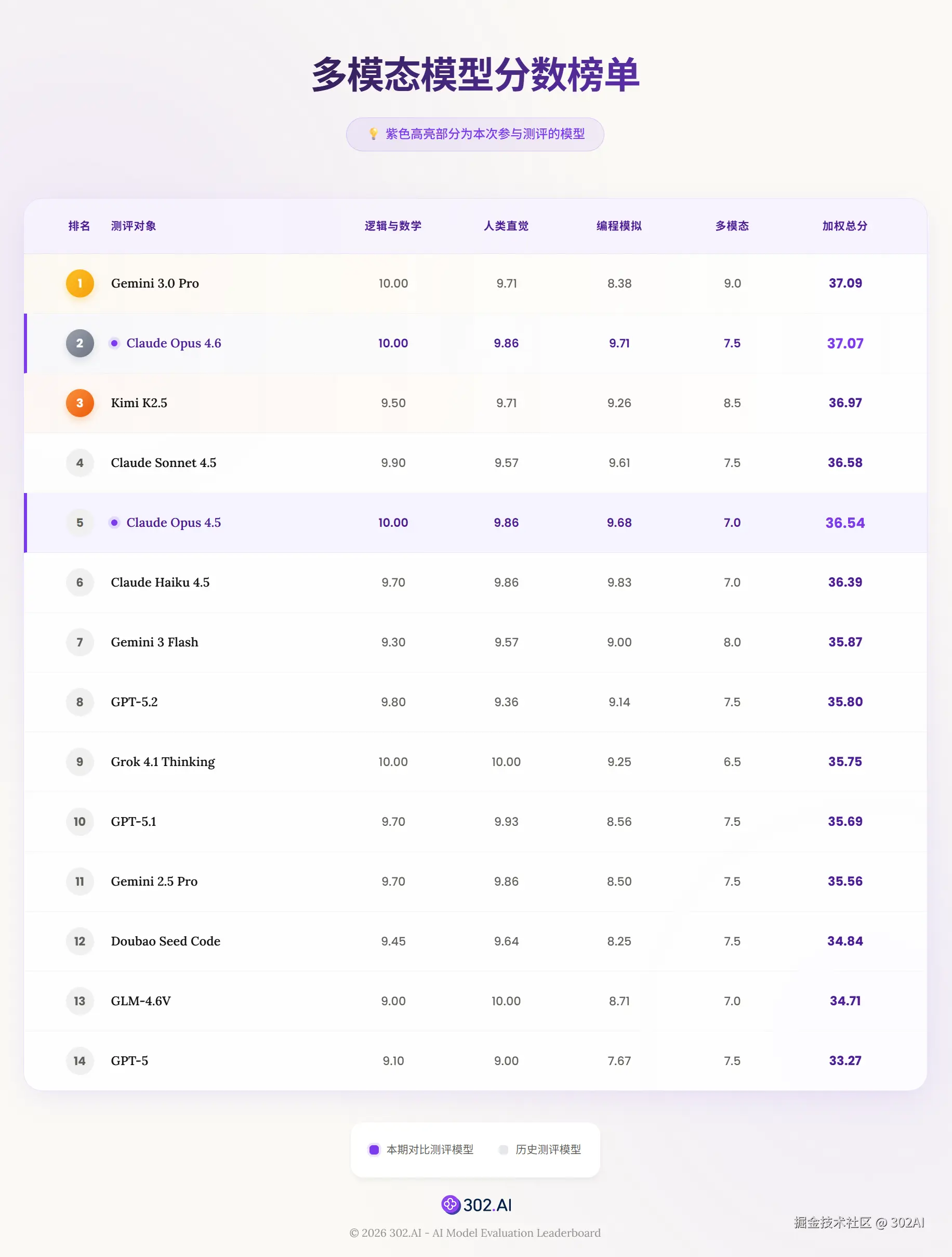 302.AI 多模态模型测评分数总榜单: