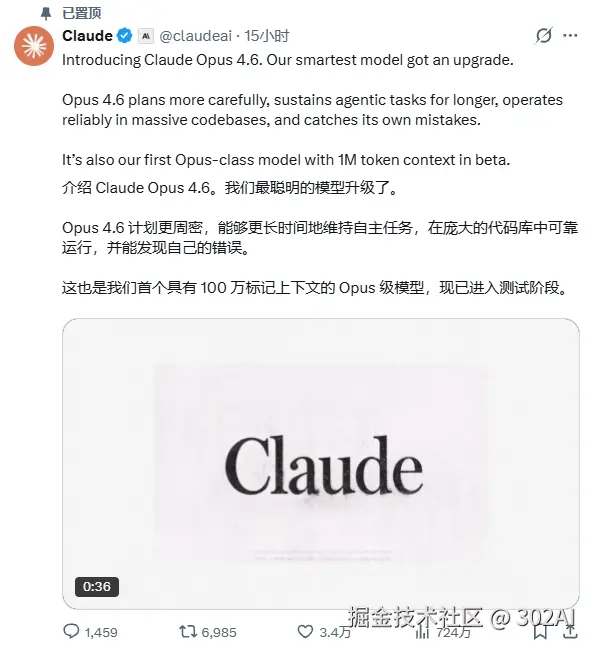 2月6日凌晨,Claude甩出了自己的新年王牌——Claude Opus 4.6。