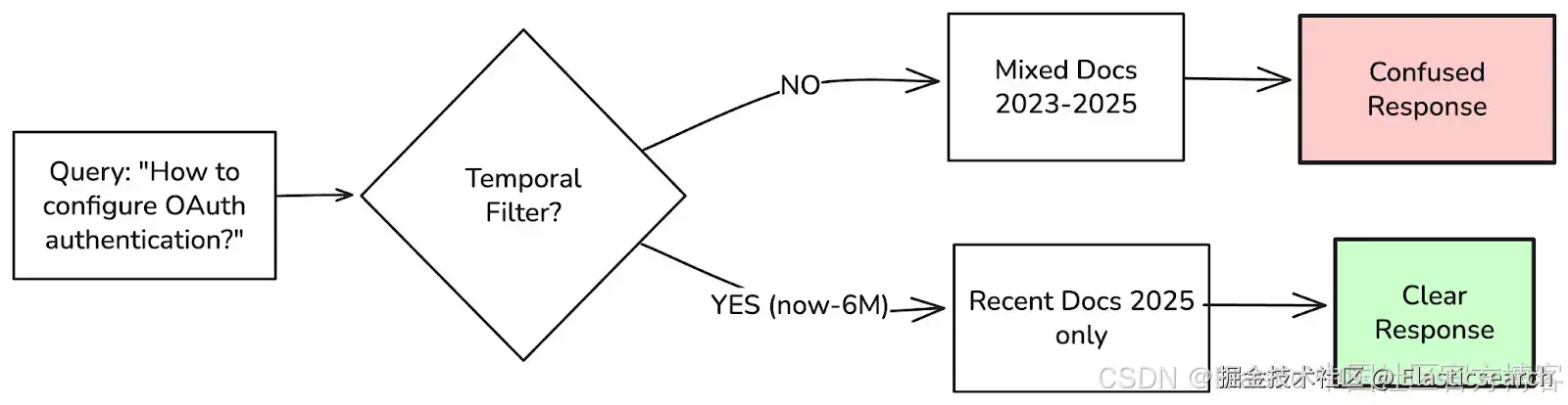 - 对于时间敏感的信息,需要主动管理以防止过时内容污染上下文窗口。使用带相对时间过滤器的范围查询(如 now-6M 或 now-1y)来处理频繁变化的内容,确保 RAG system 优先检索最近内容。详细信息请参考 [Range query | Reference]。