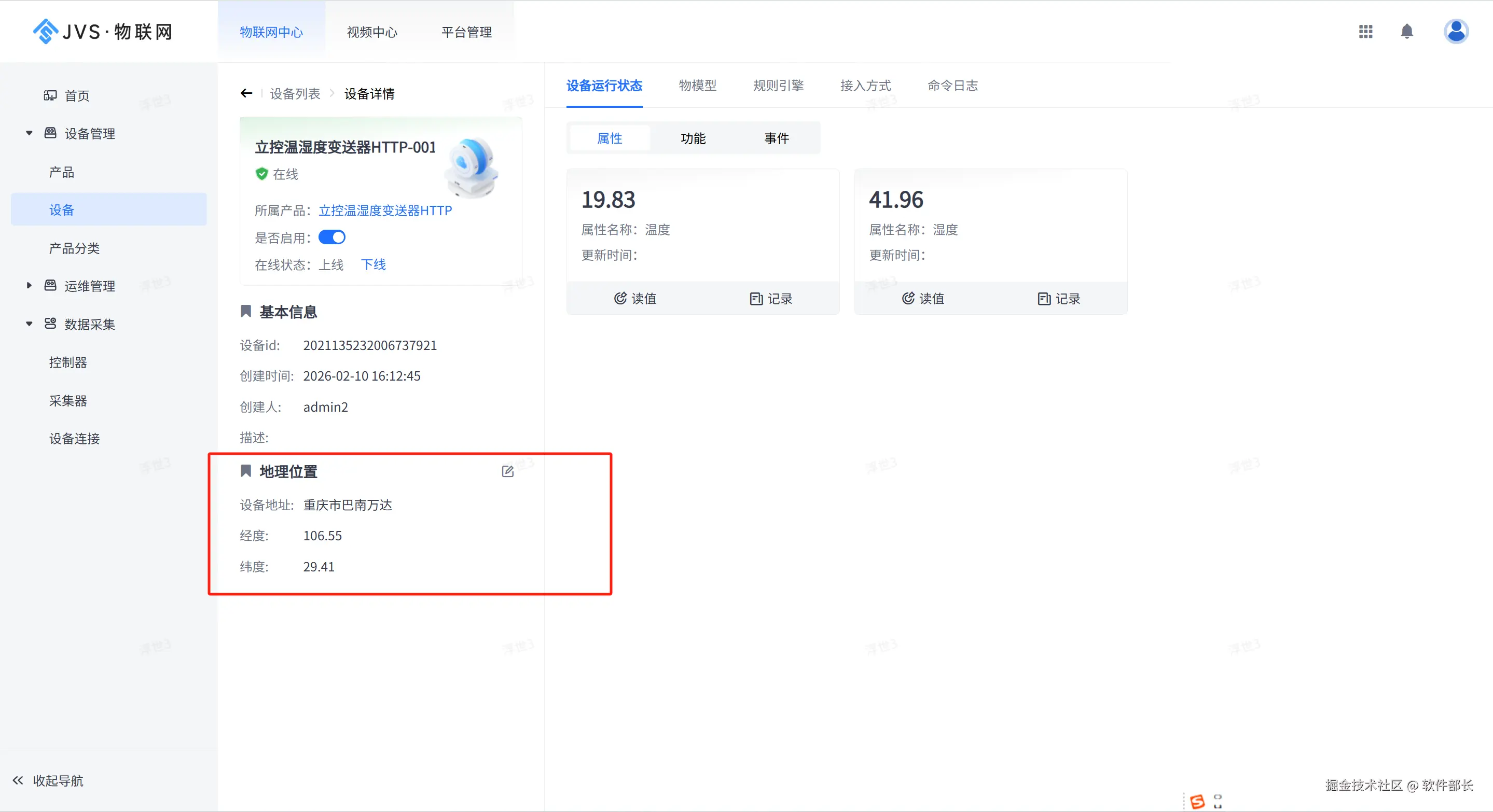 6、本次更新全面增强了设备的空间管理能力。现在,不仅可以在设备详情页中直接配置与查看精确的地理位置信息(包括地址、经纬度),更可在系统首页通过新增的「设备位置」插件,全局、可视化地掌握所有在线设备的分布状况。