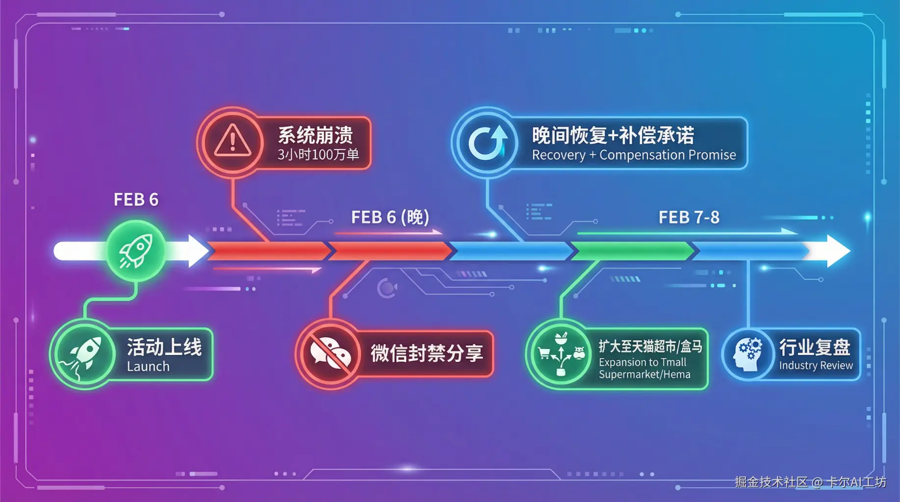 与此同时,复盘文章开始集中出现。"30亿请客却接不住人"成了舆论焦点。产品经理们在讨论承压设计,技术圈在讨论链路瓶颈,运营圈在讨论补贴ROI。