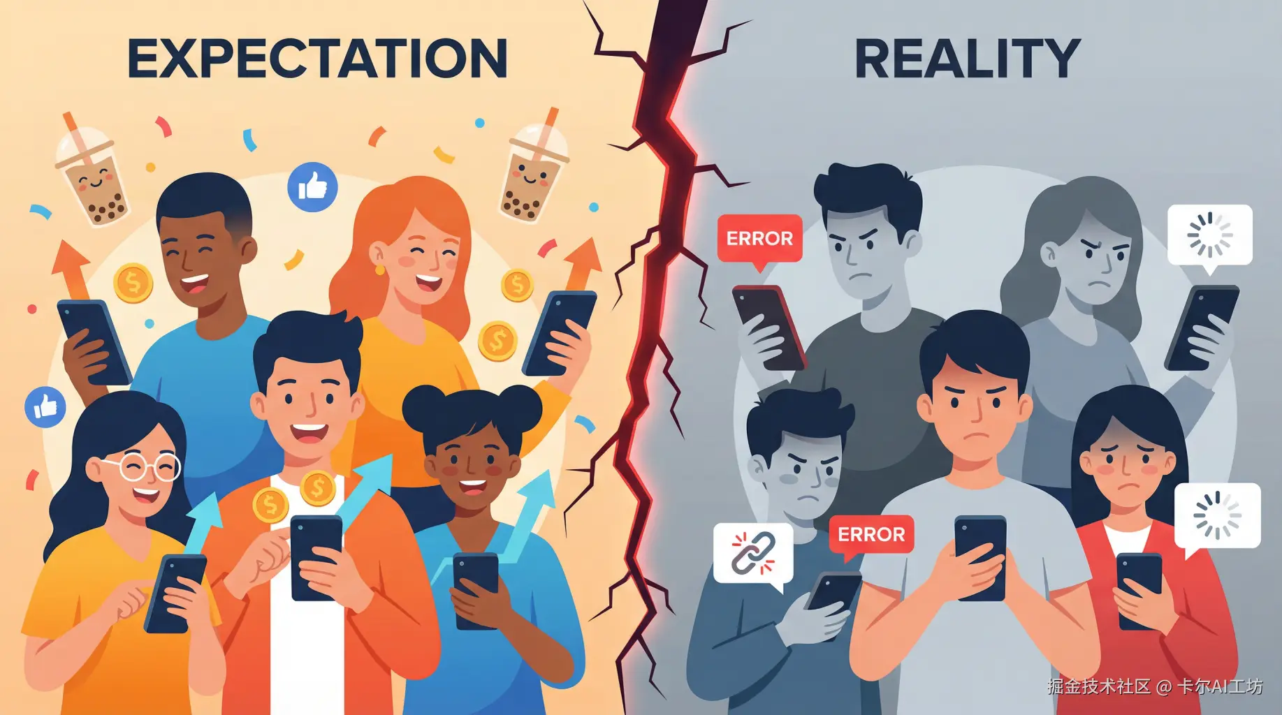 光说"服务器崩了"太表面了。真正拆开来看,这次翻车至少有三层问题。