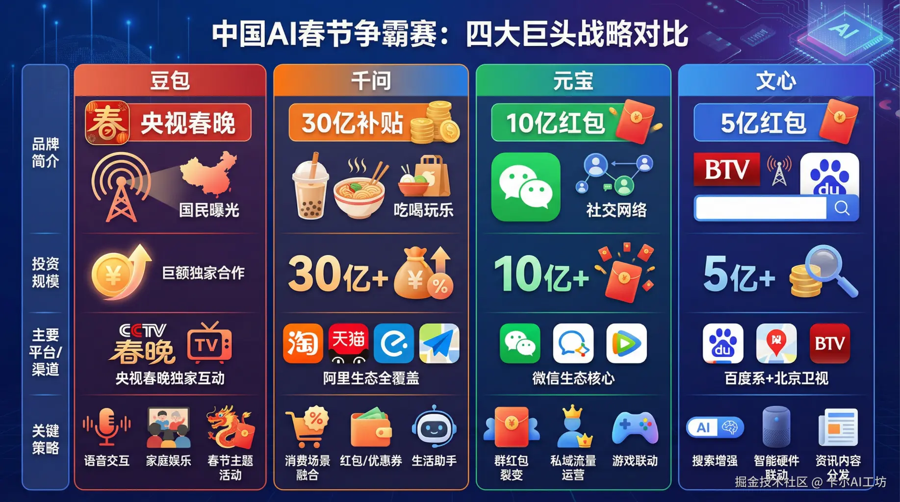 看看竞争格局:豆包拿下了央视春晚,国民级曝光直接拉满。