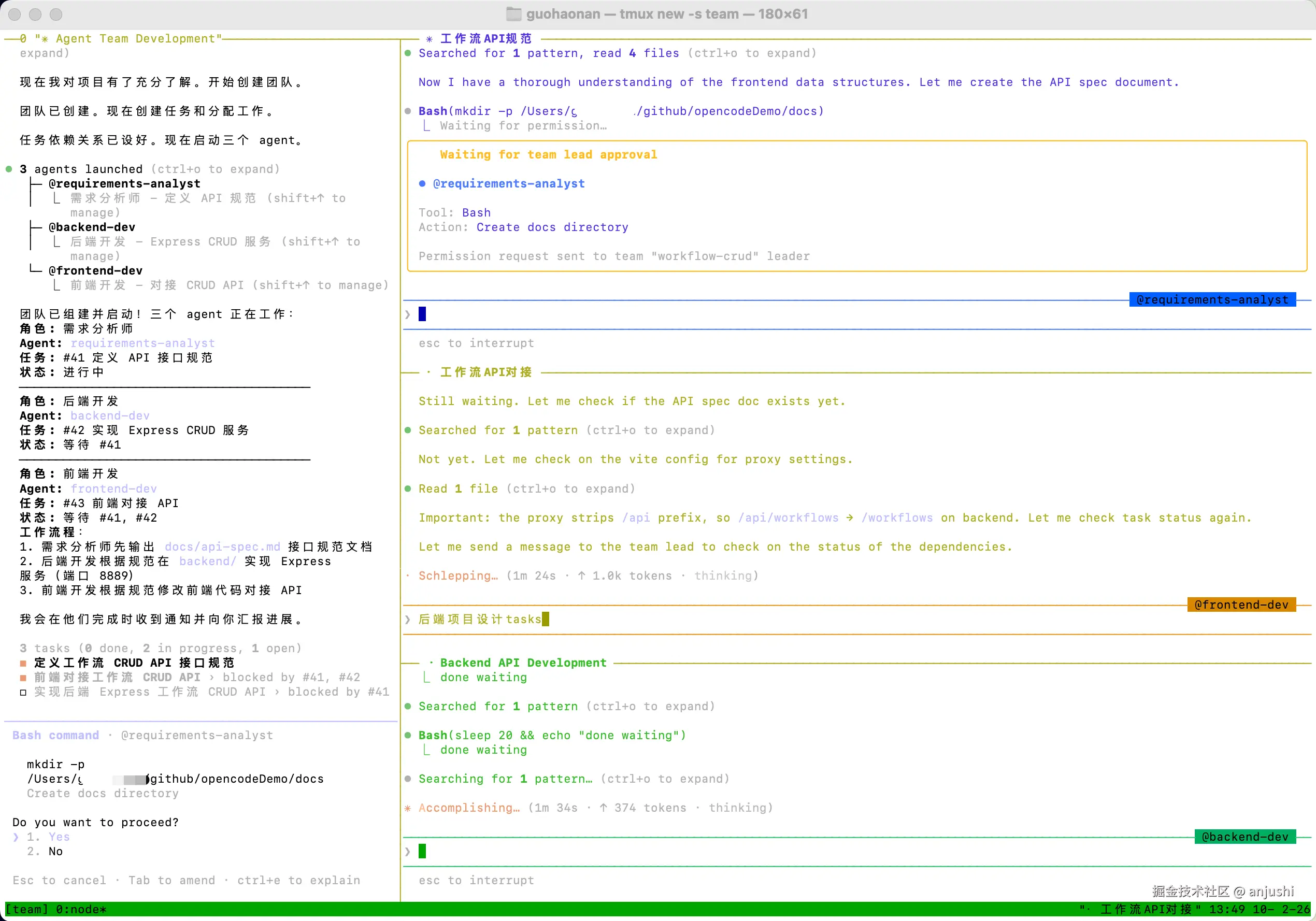 让他们各自开发前后端并进行接口对接,帮我完善我的agent team创建