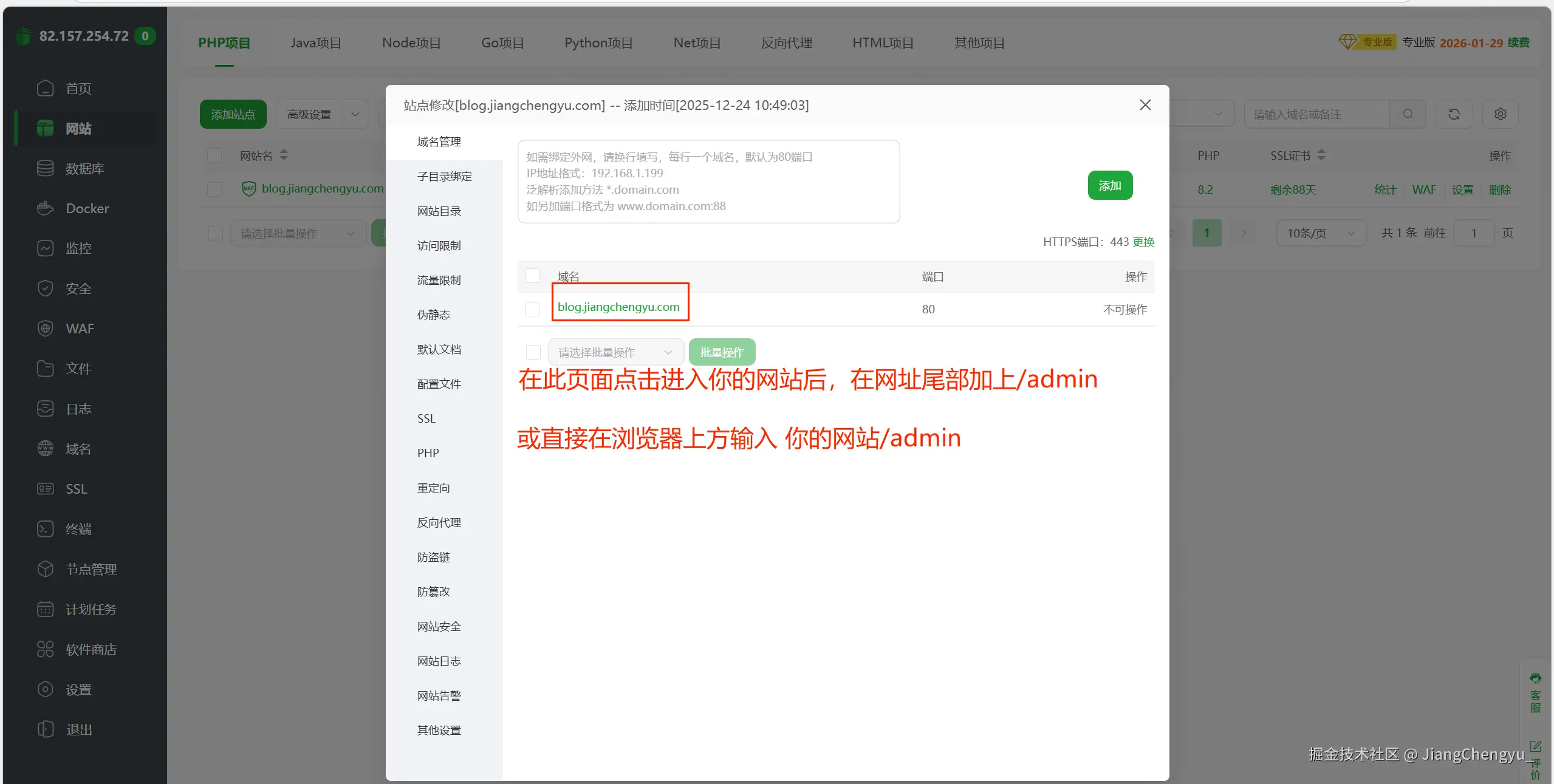进入你的网站后台。