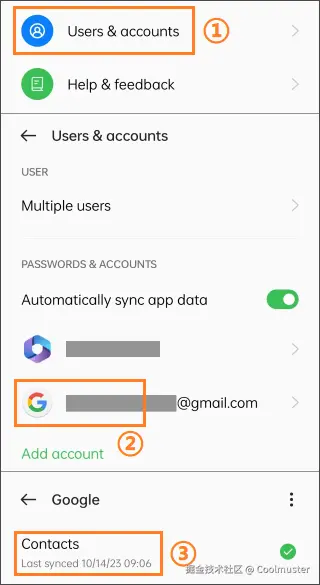 步骤4. 在您的Android设备上登录同一封电子邮件,点击附加的联系人,然后将该联系人添加到链接到您的Android手机的 Google 帐户。