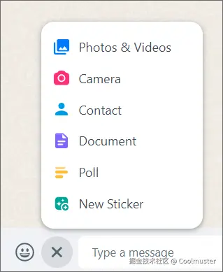 第 2 步。点击 WhatsApp 界面底部的“回形针”或“+”图标。