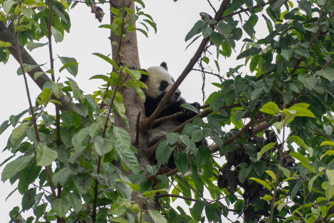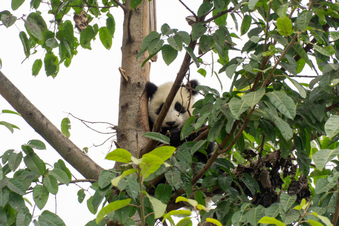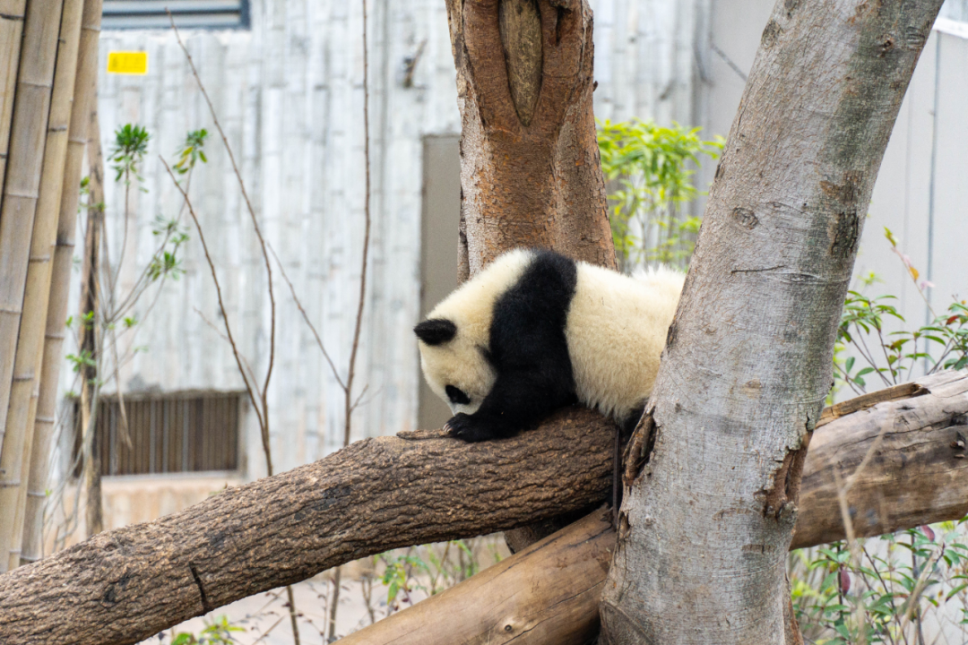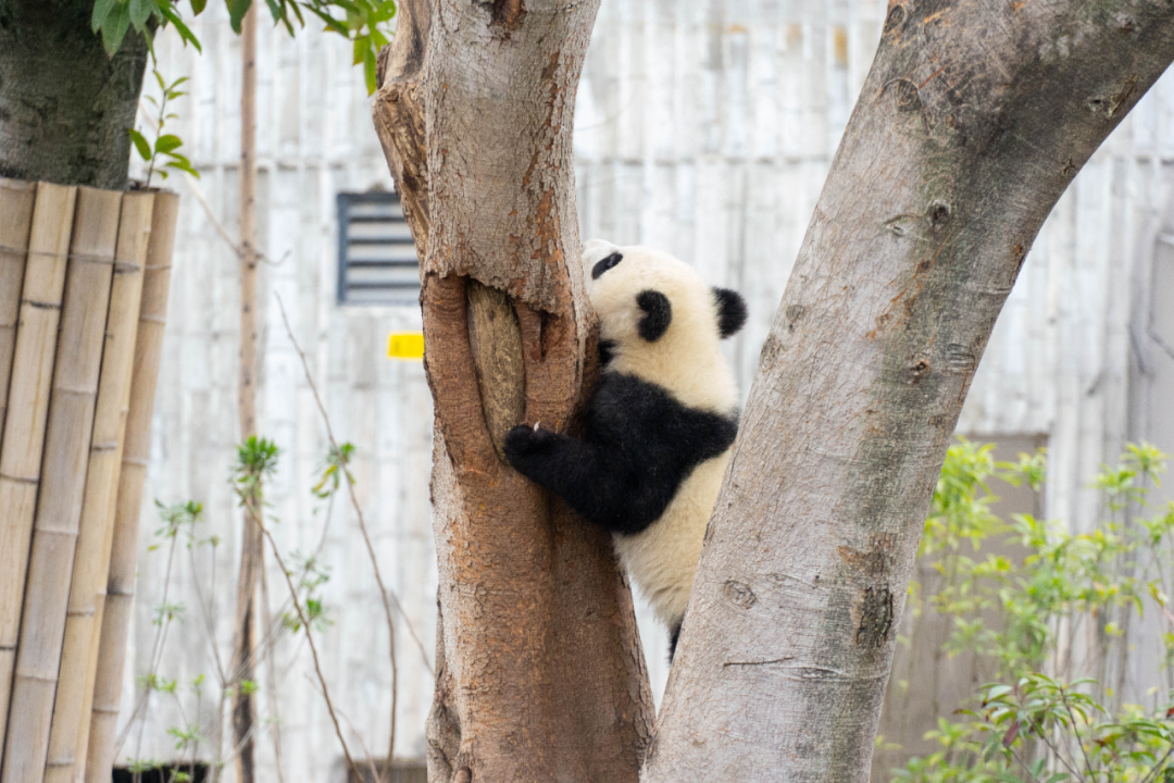 第一次去了熊猫基地,拍到了一只蠢蠢的熊猫。小小的,很可爱。不过好像跟它的同龄熊有着不小的差距。它的兄弟都已经爬得老高挂在树上睡觉了,它还在琢磨怎么上树呢。