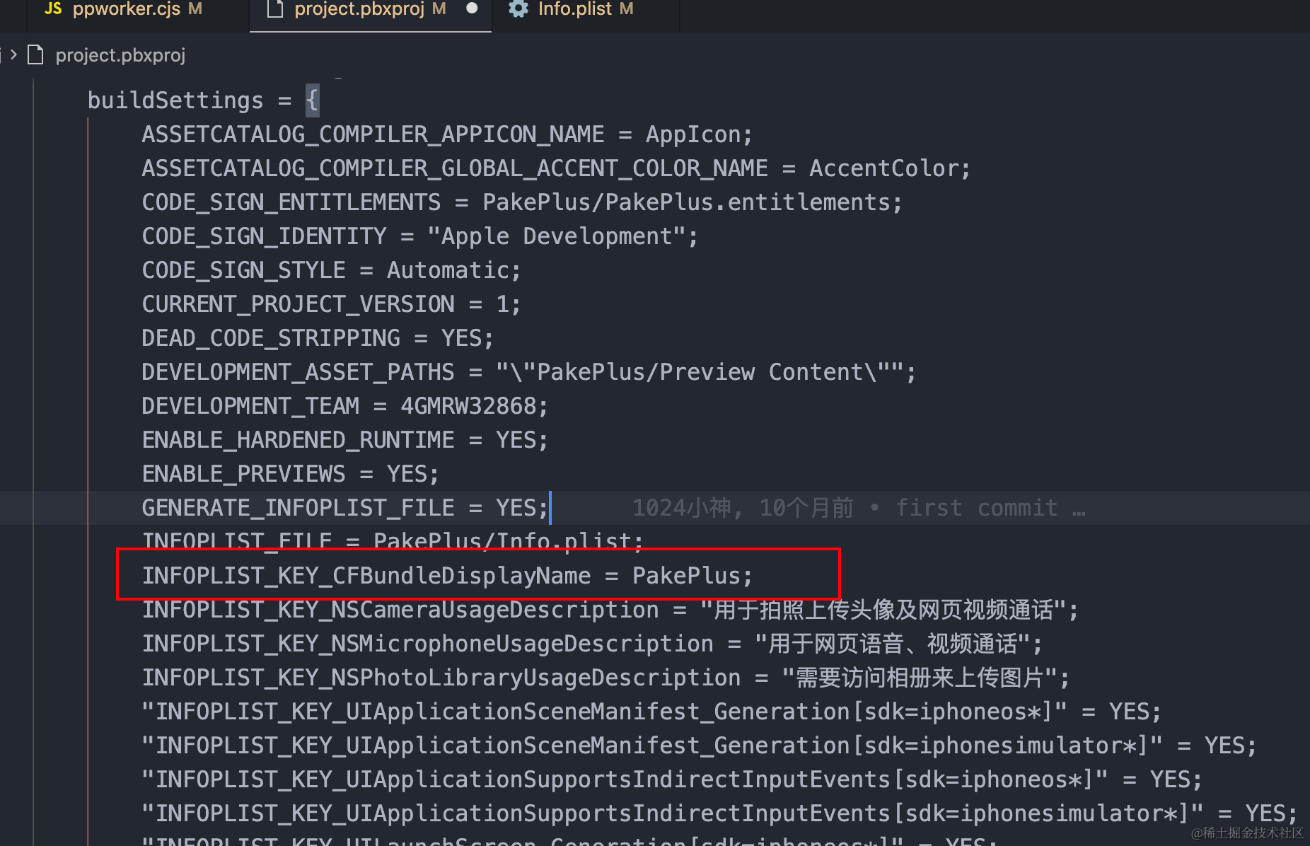 如果你在Info.plist中配置了APP名称,但是安装后却不生效,可能就是project.pbxproj文件中的INFOPLIST_KEY_CFBundleDisplayName导致的: