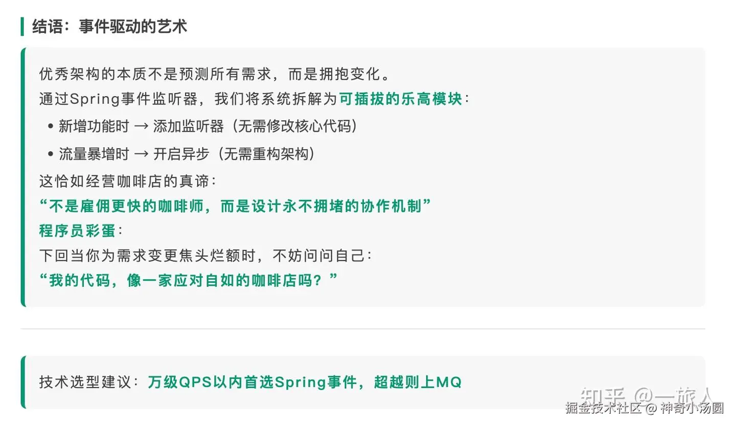 就像Spring事件驱动,用**发布-订阅模式**让系统像顶级咖啡团队般优雅应对洪峰流量”
