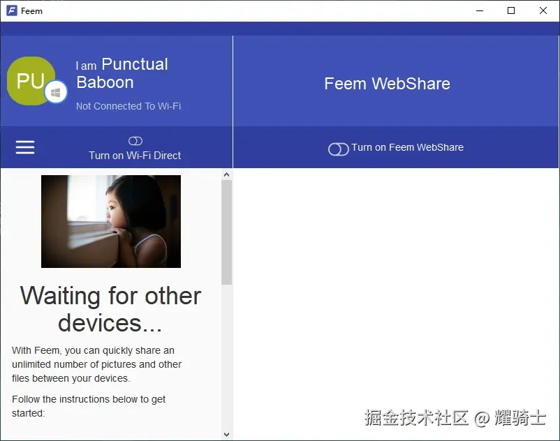 Feem 是一款局域网文件传输工具,支持 Windows、macOS、Android 与 iOS 等平台之间高速互传文件。它无需注册账号或外部服务器,依托本地网络实现点对点传输,速度快且隐私性强,支持图片、视频、文档等多种类型,适合多设备协同使用。