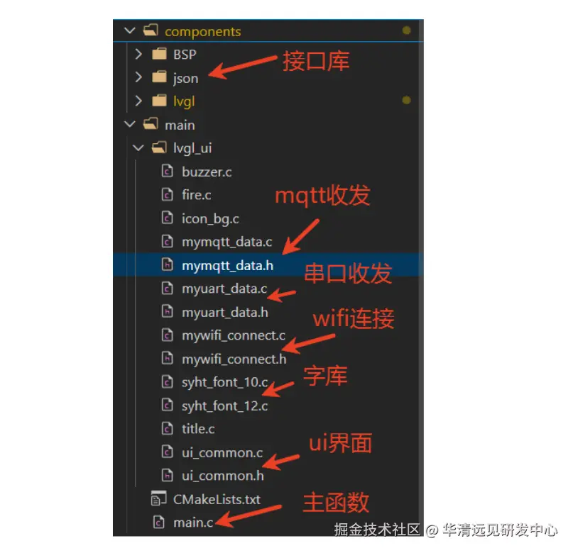 主程序: 首先实现屏幕与触摸驱动,再实现通过界面获取wifi名称和密码连接,连接wifi后,即可通过三元组连接mqtt,通过界面按钮控制蜂鸣器的开关,并显示火焰状态到界面上。