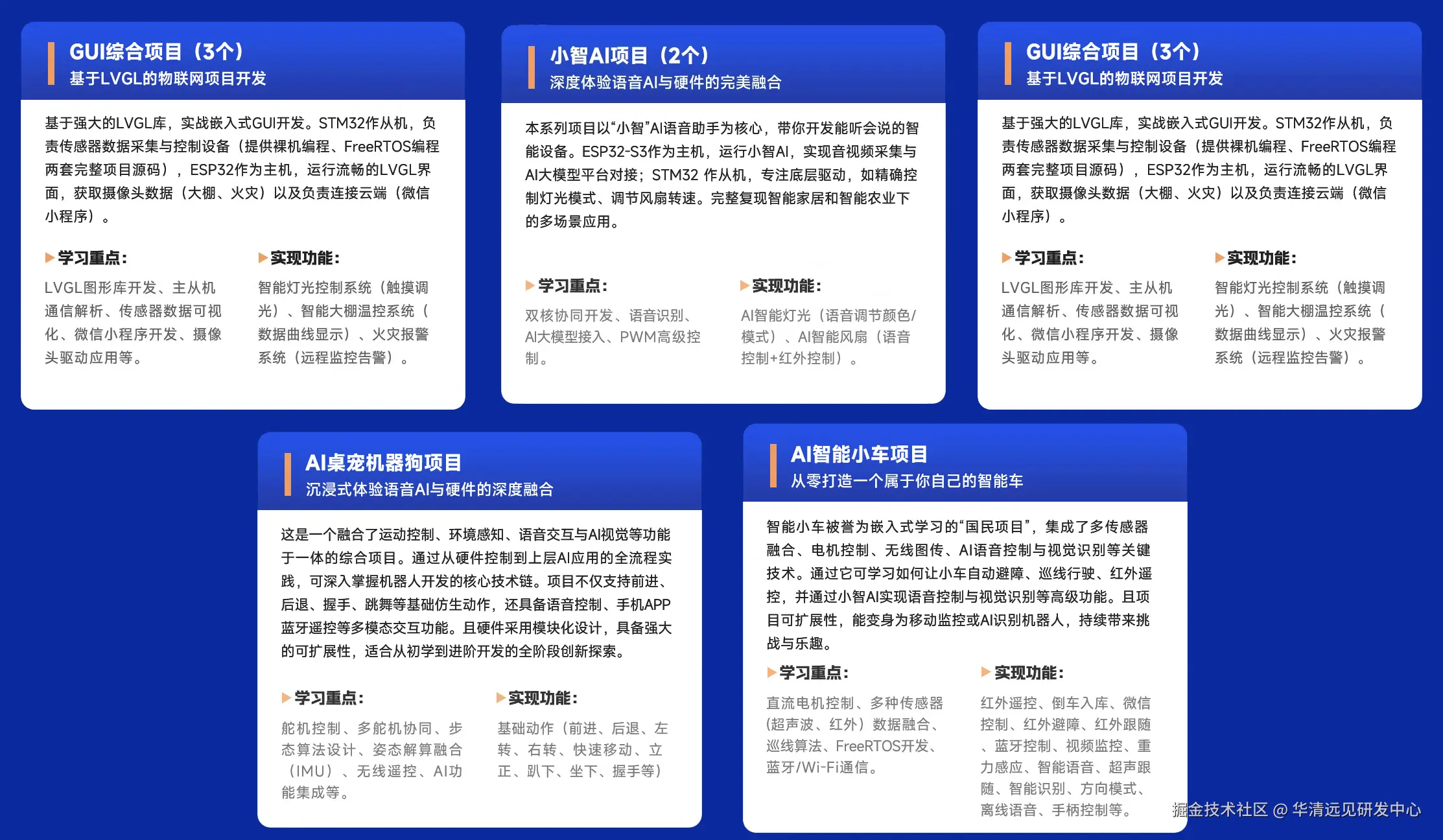 相较于仅使用 STM32F103 的方案,这套架构大幅提升系统整体性能,同时扩展板载资源与外设接口,为更多AI及物联网应用拓展提供便利。配套的实战资源更是干货满满,专属小智AI系列项目覆盖不同学习需求: