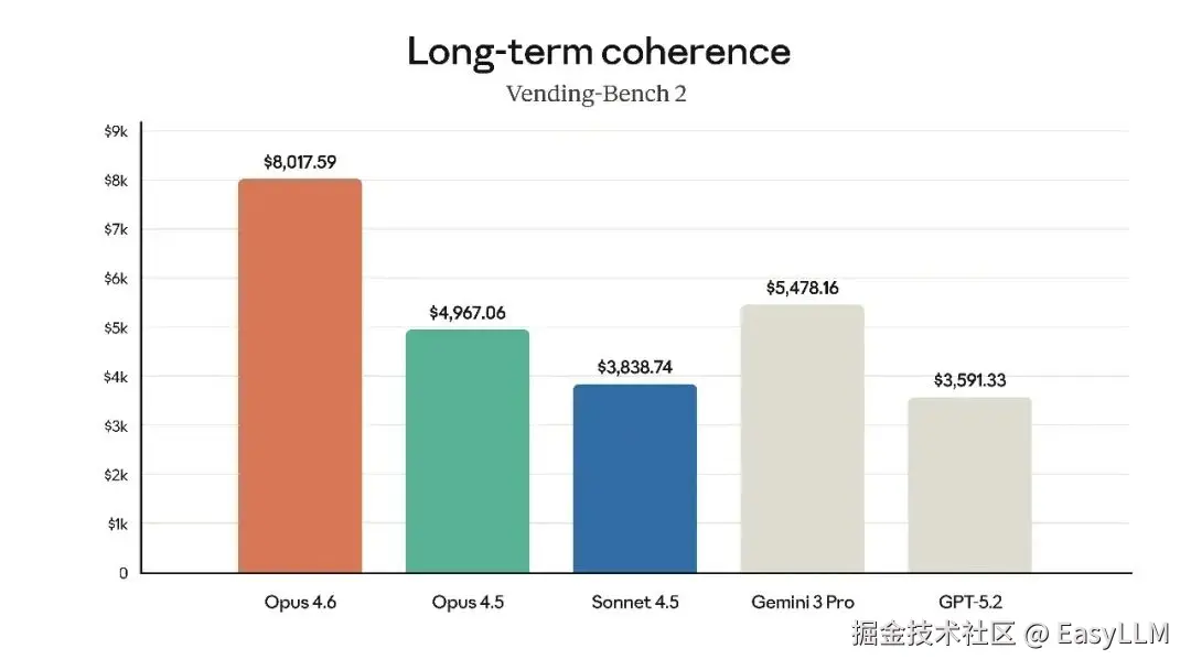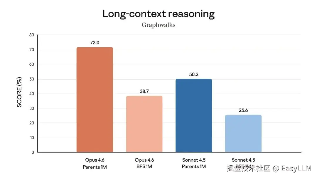 官方特别强调了Opus 4.6在长上下文任务上的突破:在MRCR v2的100万token、8针变体测试中,Opus 4.6得分76%,而Sonnet 4.5仅为18.5%。这代表了"模型在保持峰值性能的同时能实际利用多少上下文的质的飞跃"。