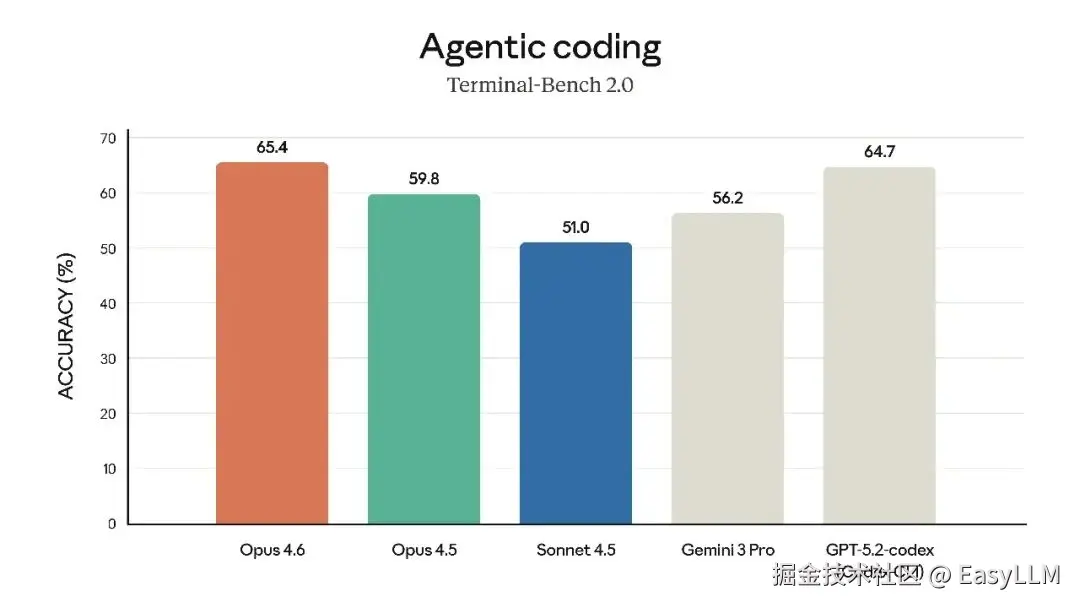 在智能体编程评测Terminal-Bench 2.0上,Opus 4.6取得了业界最高分,展现了在真实世界智能体编程和系统任务上的卓越表现。官方强调,新版本"规划更周密,能够更长时间地持续执行智能体任务,在大型代码库中运行更可靠,并具有更好的代码审查和调试能力来发现自身错误"。