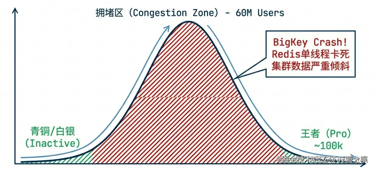 “面试官,针对 1 亿级玩家,单纯的分桶策略无法解决正态分布导致的 BigKey 问题,且集群下无法原子操作。我的设计思路是 ‘分层架构 + 统计估算’: