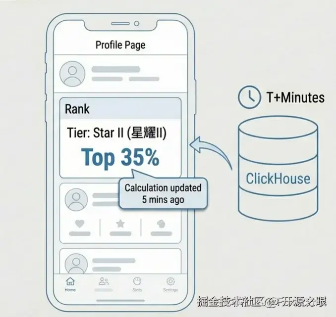 - 如果非要精确排名? 那就走 ClickHouse 或 Spark 的分钟级离线计算。玩家打完一局,排名不会秒变,等个 5 分钟更新一次,完全可接受。