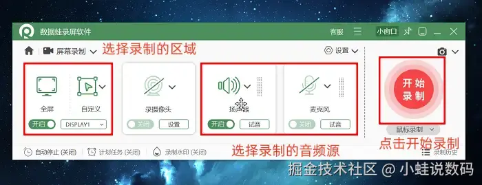 操作伊始,需在数据蛙官网下载软件并完成安装,打开软件进入主页后,选定符合自身需求的录制模式;