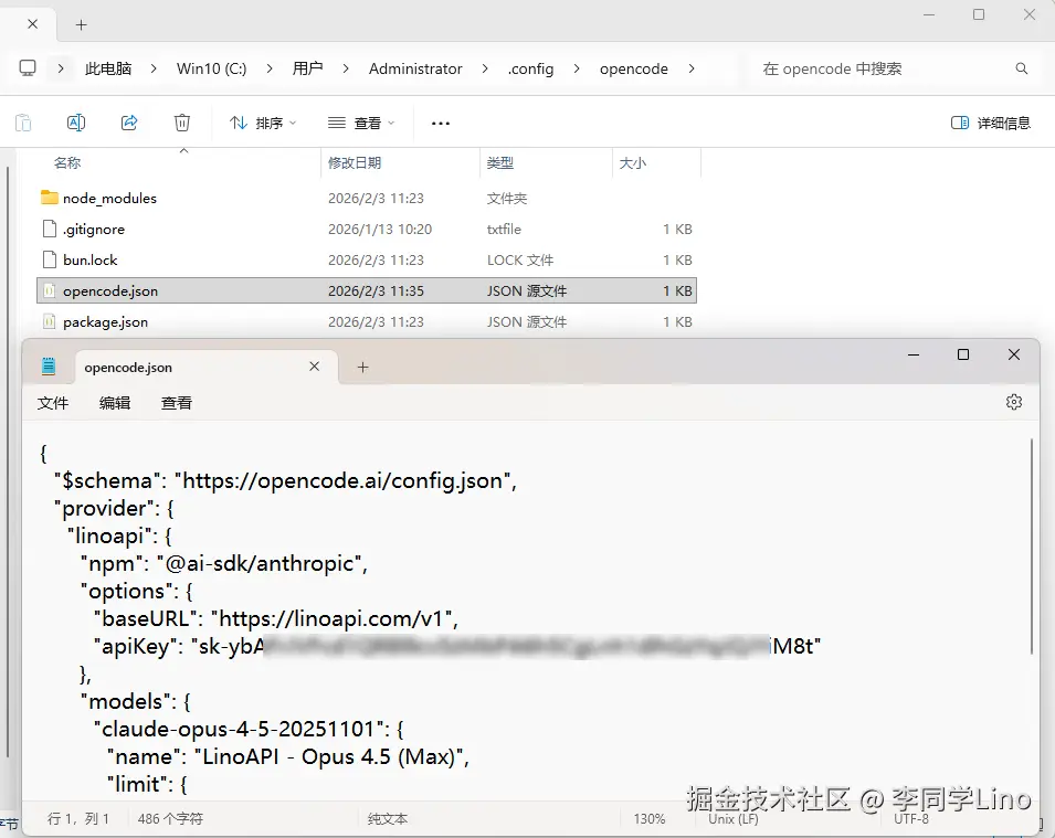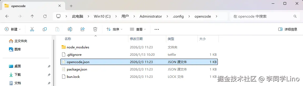 (例如:如果是管理员账户,路径就是*C:\Users\Administrator\.config\opencode\opencode.json**)*