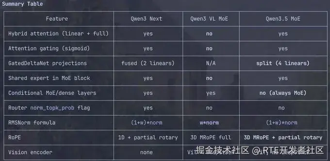 MoE 架构:代码中明确列出了 Qwen3_5Moe 与 Qwen3_5MoeText,证实 Qwen 3.5 将继续沿用 Moe。