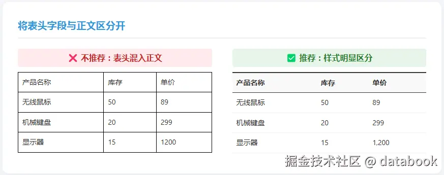 表头是路牌,正文是风景。如果路牌和风景混在一起,游客就迷路了。