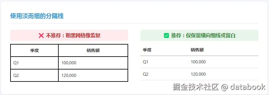 设计表格的最高境界是“隐形”。好的设计应该让读者忽略表格本身,而直接看到数据。