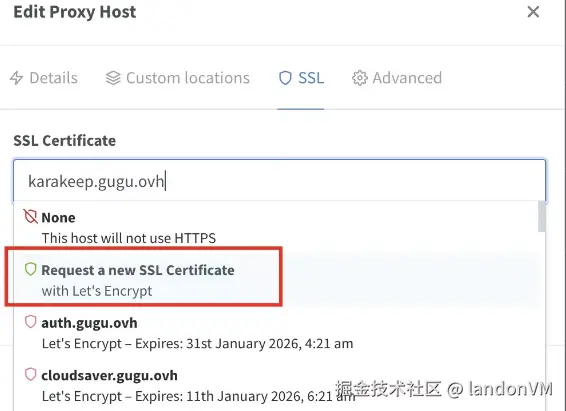 由于Karakeep使用的是HTTP协议,建议通过Nginx或Nginx Proxy Manager进行反向代理,配置SSL证书来保证安全访问。如果你已经拥有域名并将其解析到服务器,接下来的步骤将帮助你设置反向代理。