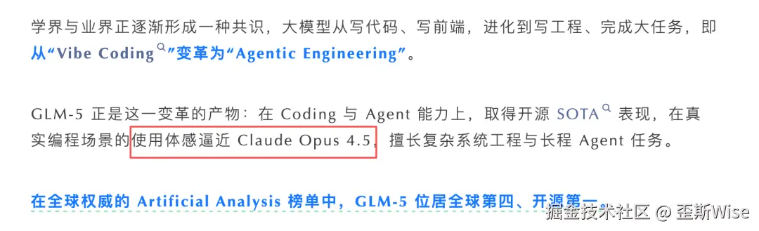 GLM-5 正是这一变革的产物:在 Coding 与 Agent 能力上,取得开源 SOTA 表现,在真实编程场景的使用体感逼近 Claude Opus 4.5,擅长复杂系统工程与长程 Agent 任务。