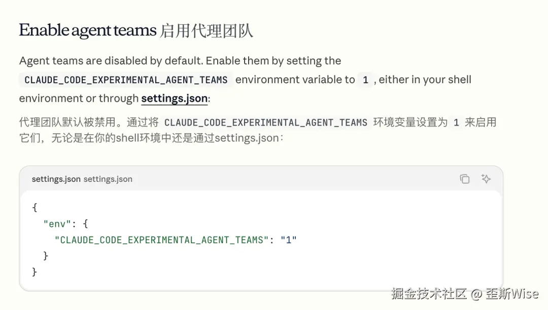 参考这个文档,打开agent team模式https://code.claude.com/docs/en/agent-teams#start-your-first-agent-team