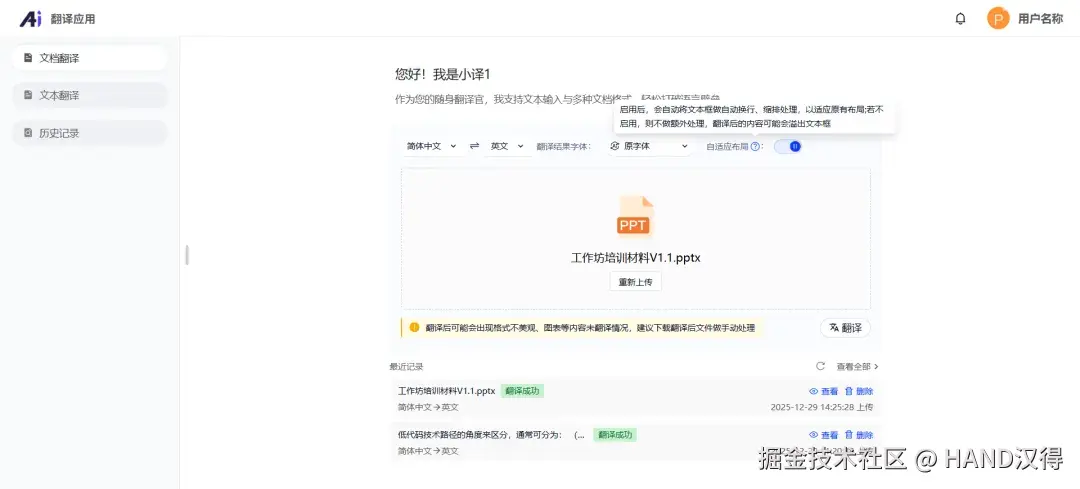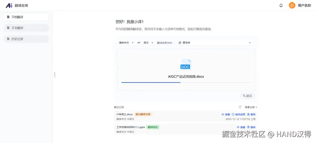 即刻登录汉得AI中台,开启你的智能翻译新体验,让每一次跨语言沟通都轻松高效,每一份翻译成果都清晰可控!