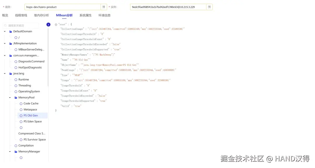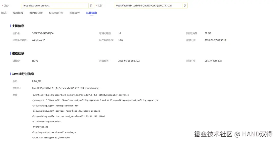 - MBean 详情、系统属性与运行环境信息等
